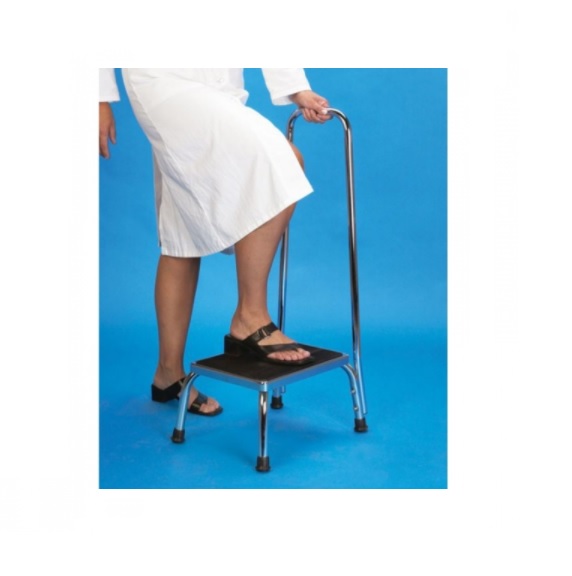 Wygodny i bezpieczny o mocnej konstrukcji stołek z poręczą bezpieczeństwa, służy do podwyższenia osoby, w celu dotarcia do trudno dostępnych miejsc np. wanny czy brodzika.