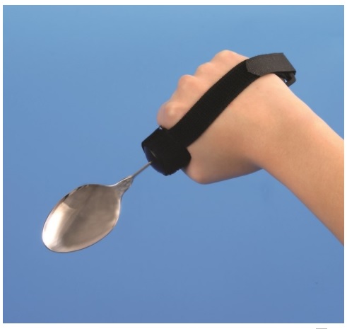 Jest to idealne rozwiązanie dla osób o ograniczonej sprawności ruchowej. Wystarczy przymocować pasek do sztućców i wsunąć rękę przez pętlę. Pasuje do niemal każdej dłoni. Wykonane z rzepami dla różnych wielkości dłoni.