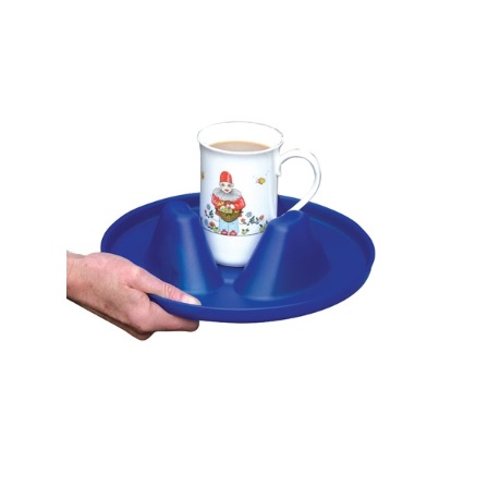 Jest to ochrona przed rozlaniem napoju i poparzeniem. Kubek umieszcza się na środku tacy w specjalnie stworzonym otworze, który uniemożliwia jego przesunięcie się.