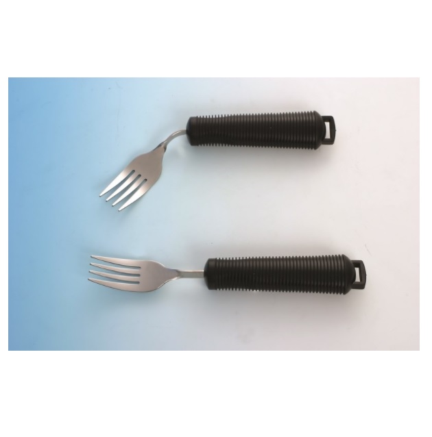 Widelec elastyczny idealny jest dla osób niepełnosprawnych z ograniczonym ruchem nadgarstka lub palców. Gruba rączka wykonana z miękkiej antypoślizgowej gumy ułatwiającej dobry chwyt.