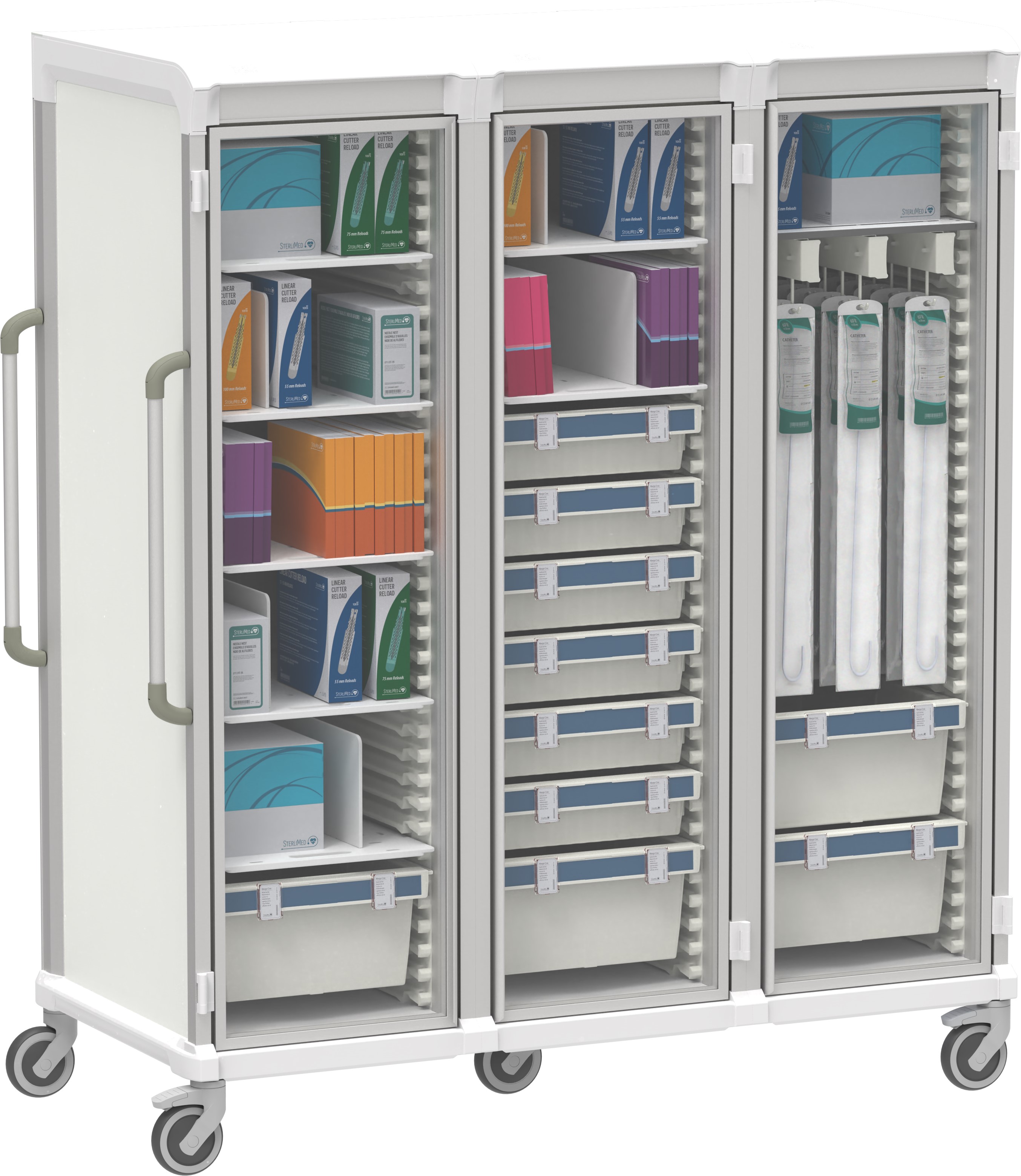 - Lekka i ergonomiczna konstrukcja pozwala pielęgniarkom na szybkie przestawianie wózków i łatwy dostęp do przechowywanych materiałów