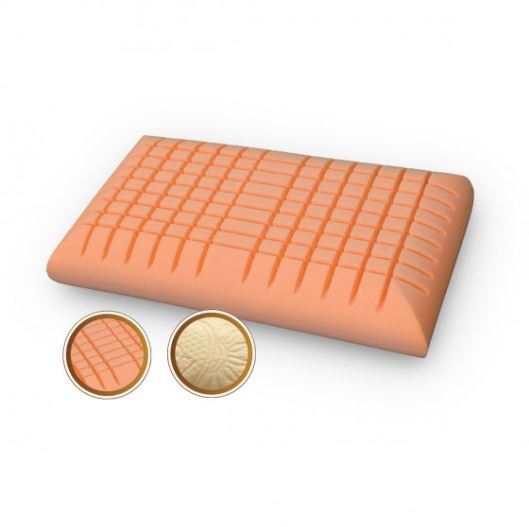 ma klasyczny kształt z dodatkowymi nacięciami sprzyjającymi relaksacji kręgosłupa szyjnego i lepszemu ukrwieniu mięśni szyi. Wnętrze poduszki jest wykonane z tzw. bio pianki wiskoelastyctnej. Poduszka wyprodukowana w zgodzie z naturą dzięki wykorzystaniu wyjątkowego materiału – soi. Jego struktura zapewnia idealny kompromis pomiędzy stabilnym podparciem a miękkością