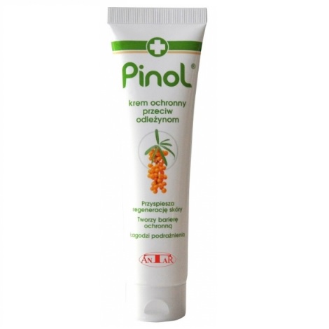 Pinol krem jest preparatem polecanym do pielęgnacji skóry narażonej na powstawanie odleżyn, szczególnie u osób długotrwale unieruchomionych. Działa łagodząco również przy odparzeniach i otarciach. Do stosowania naprzemiennie z płynem Pinol.
