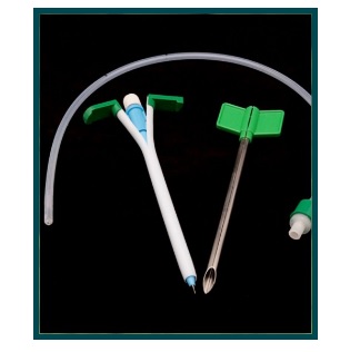 • igła typu trokar z rozrywalną koszulką lub rozrywalna igła metalowa