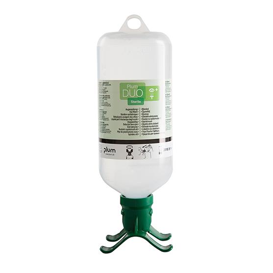Butelka zaweira 0,9% sterylny roztwór chlorku sodu. Wypłukuje ciała obce tj. kusz, brud itp z obu oczu w tym samym czasie. Butelka odpowiednia także jako uzupełnienie stacji DUO Eye Wash.