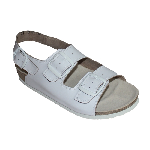 Obuwie (sandały) medyczne wykonane ze skóry powlekanej. Metalowe trwałe klamry pozwalają na regulacje tęgości. Lekki spód korkowy o porofilu ortopedycznym, zapewniającym właściwe położenie stopy. Podeszwa gumowa, antypoślizgowa. Możliwość mycia wierzchów wodą z dodatkiem delikatnych środków myjących. Obuwie posiada astesty Instytutu Przemysłu Skórzanego dopuszczające do stosowania w placówkach Służby Zdrowia oraz Deklarację Zgodności zgodną z normami europejskimi.