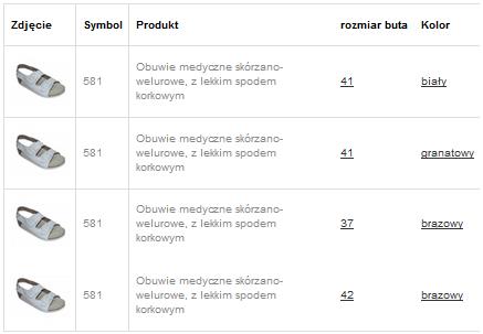 Dostępność obuwia: