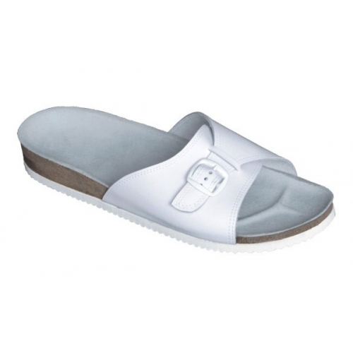 Lekkie spody korkowe z profilem ortopedycznym. Podeszwa gumowa przeciwpoślizgowa. Cholewka skórzano-welurowa. Metalowa trwała klamra pozwala na regulacje tęgości. Możliwe jest mycie wierzchów wodą z dodatkiem delikatnych środków myjących. Posiada atesty Instytutu Przemysłu Skórzanego dopuszczające do stosowania w placówkach Służby Zdrowia oraz Deklarację Zgodności z normami europejskimi.