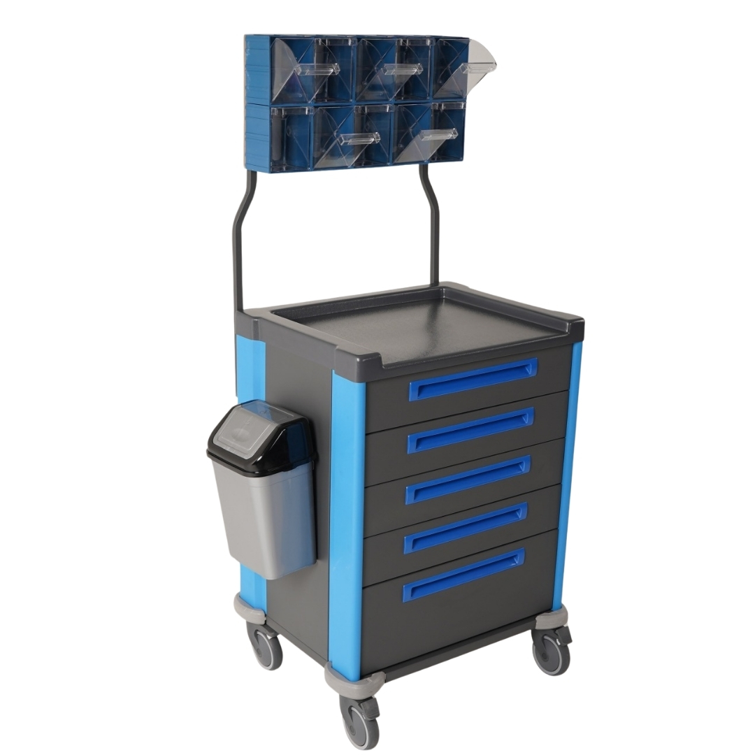 potrzebnego do opieki nad pacjentem. Wózek ten wyposażony jest w kompaktowe szuflady
