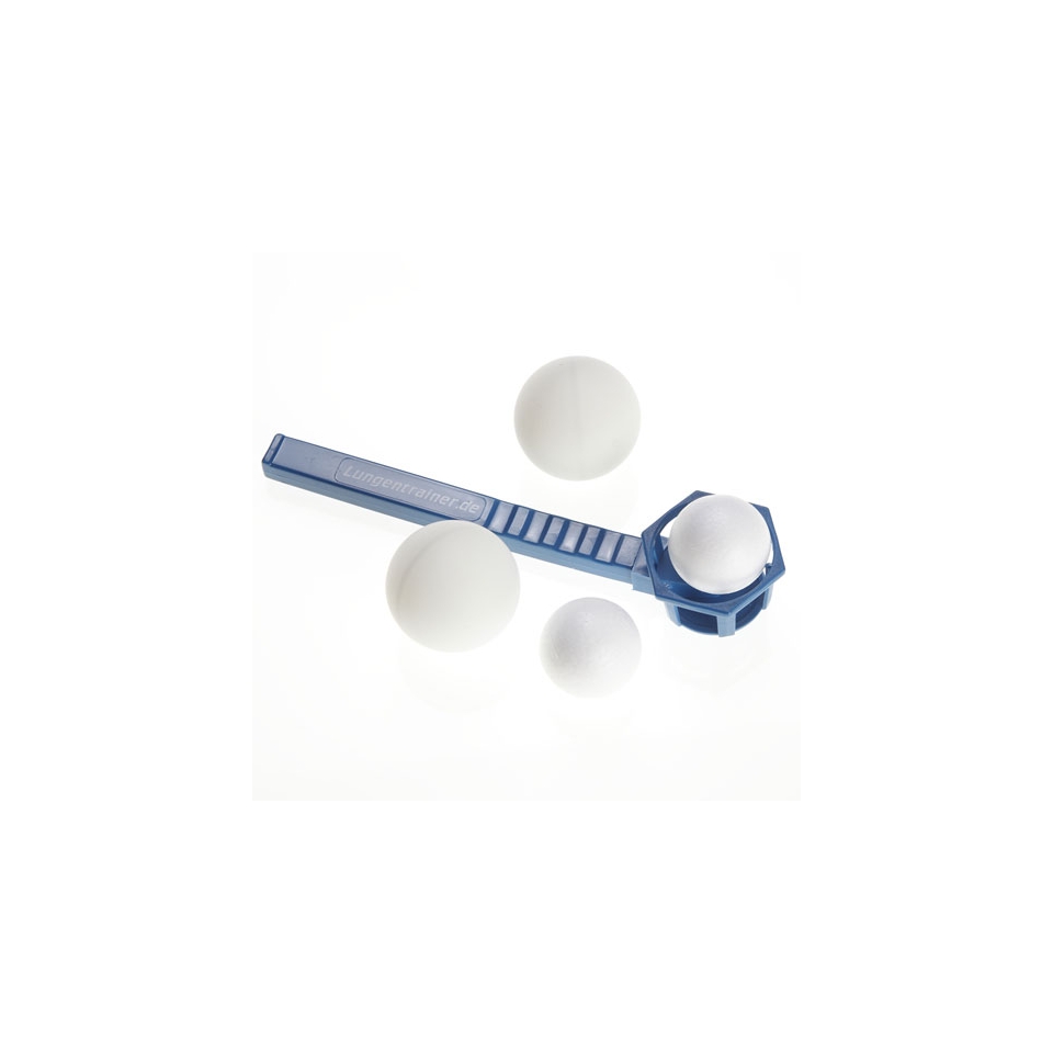 Proste urządzenie do ćwiczeń oddechowych. Styropianowa kulka unoszona jest w powietrzu przy pomocy strumienia wydychanego powietrza z naszych płuc.