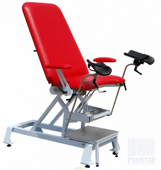 - W standardzie fotel wyposażony jest w podkolanniki regulowane we wszystkich płaszczyznach oraz pojemnik ze stali nierdzewnej,