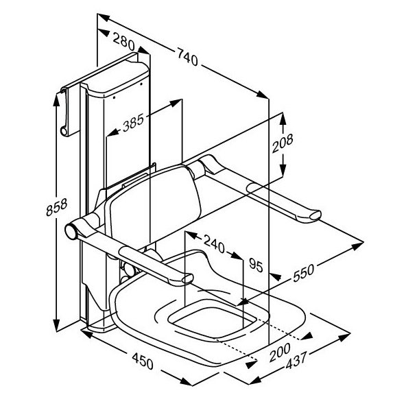 Siedzisko prysznicowe PLUS 450 z oparciem i podłokietnikami