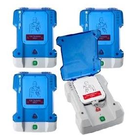 Profesjonalny zestaw 4 defibrylatorów AED PRESTAN zasilanych na 4 baterie "C" każdy, z kompletem podkładek szkoleniowych i torbą do przenoszenia.