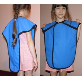Uniwersalna peleryna ochronna przeznaczona głównie do diagnostyki stomatologicznej – zdjęć pantomograficznych i medycyny nuklearnej. Przednia część fartucha zapinana na rzepy co pozwala na idealne dopasowanie do każdej sylwetki. Tył w kształcie litery Y zapewnia ochronę kręgosłupa i podnosi komfort użytkowania.