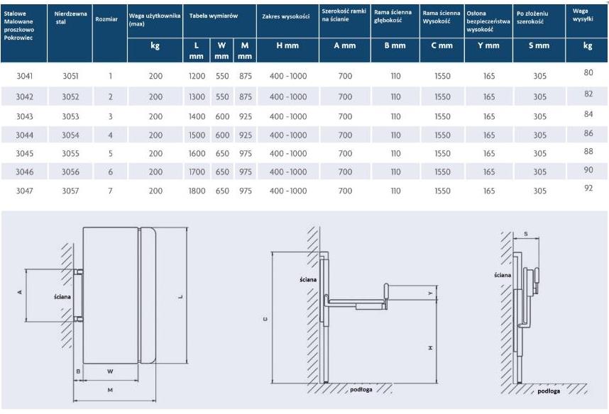 Naścienny przewijak z elektrycznym podnośnikiem, który jest odpowiedni dla dzieci i dorosłych nawet do 200 kg. Pomimo swojej solidnej konstrukcji przewijak ma wąską budowę więc pasuje do większości pomieszczeń. Unikalna osłona bezpieczeństwa może być schowana aby usprawnić dostęp do realizowania transportu np. z wózka inwalidzkiego. Przewijak ten ma bardzo imponujący zakres unoszenia 600mm. Różne rozmiary przewijaka, zaspokajają różne potrzeby od dzieci aż po dorosłych. Rama przewijaka jest malowana proszkowo dlatego też może się on nadawać do pokojów kąpielowych lub innych wilgotnych pomieszczeń.