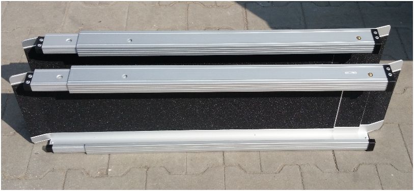 Rampy wykonane z wytrzymałych stopów aluminium. Zastosowanie wysokiej klasy materiałów antypoślizgowych dających użytkownikowi uczucie pewności.