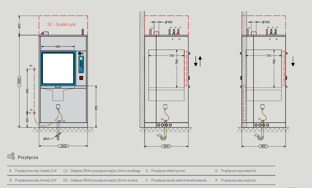 3. Wymiary: 15DIN: 1000mm x 900mm x 1900mm / 15DIN SC: 1000mm x 900mm x 2300mm