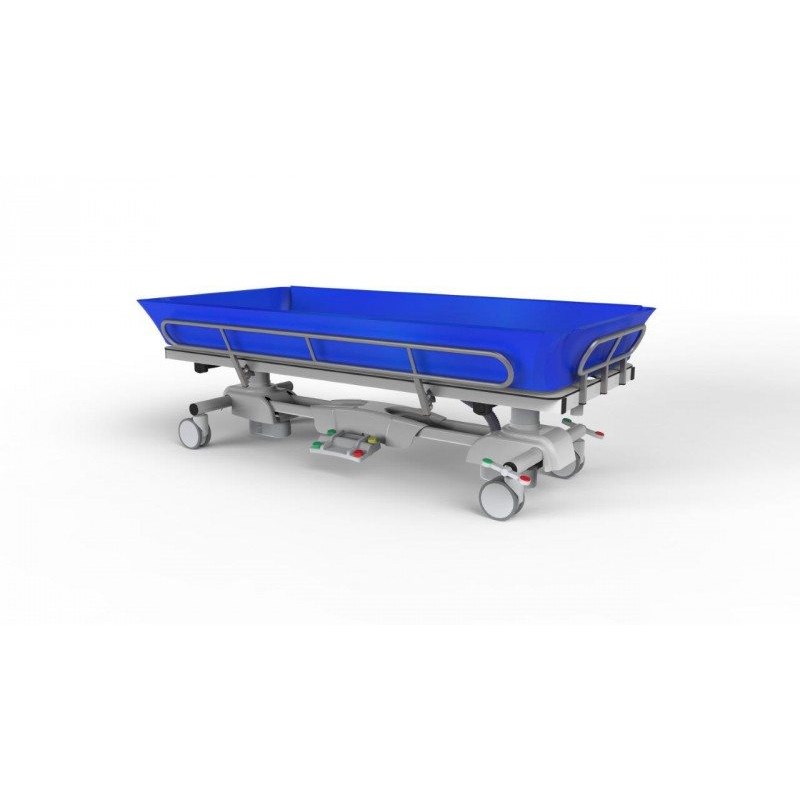 Wózki LS-2100 2C przeznaczone są transportu i mycia chorych leżących. Bardzo dobra stabilizacja wózków umożliwia obsługę pacjentów o dużej wadze przy maksymalnej wysokości wanny. Barierki boczne ze stali nierdzewnej są składane, dzięki czemu umożliwiają przejazd wózka przez wąskie przestrzenie.