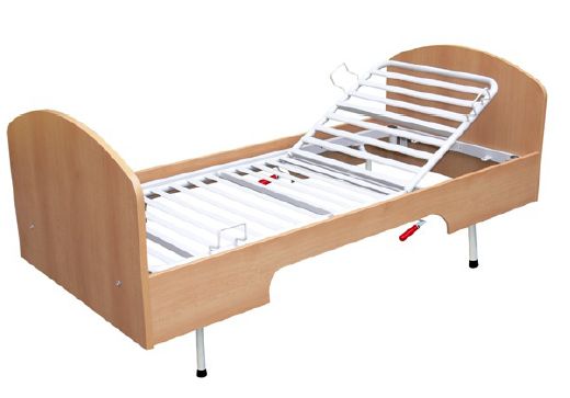 Leże wypełnione jest listwami z wodoodpornej sklejki. Wymiary leża wynoszą 900 x 2000 mm. Oparcie pleców bez regulowanego zagłówka. Regulacja pleców płynnie sprężyną gazową z blokadą. Łóżko posiada tuleje do mocowania wyposażenia przy wezgłowiu. Wysokośc leża wynosi 410 mm. Oparcie nóg nie posiada regulacji. Drewniane barierki boczne są nakładane do stałych boków.
