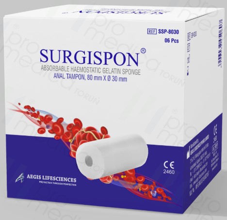 SURGISPON® - wchłanialna hemostatyczna gąbka żelatynowa jest jałową, plastyczną, nierozpuszczającą się w wodzie wchłanialną gąbką żelatynową stosowaną jako preparat hemostatyczny drogą aplikacji na krwawiącą powierzchnię. SURGISPON® jest niepirogenny i biokompatybilny.