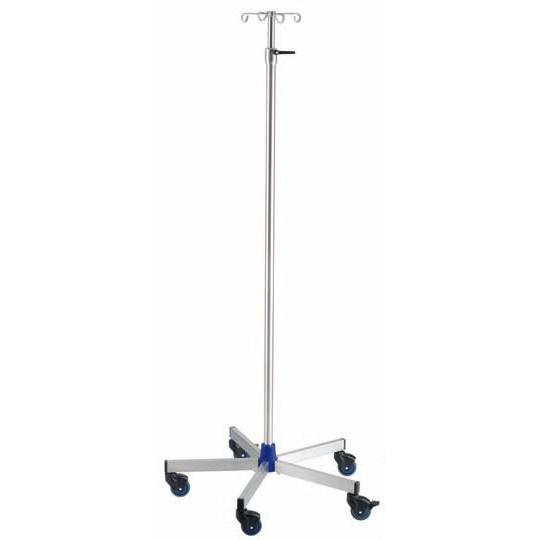 Kolor części z tw. szt. niebieski. Średnica rury 33,7 / 25 mm. Krzyżak do butelek stal szlachetna 4 haki - 5 kg / hak. Blokada skaręcane ustawianie wysokości. Przestawienie wysokości 1.900 mm – 2.800 mm. Średnica stopy 800 mm, profil wysięgnika 45 x 25 mm, rolki mono 80 mm (2 x antystatyczne & blokada, 3 x normalne). Ciężar całkowity / ciężar stopy ok. 13,2 kg / 7,5 kg z kubkiem na skropliny i uchwytem.