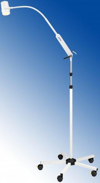 Seria 2 - 35 W. Ramię elastyczne. Lampa na statywie z przestawienem wysokości z podstawą na rolkach. Kolor lampy biały; typ lampy reflektor halogenowy z zimnym lustrem lampy 12 V /35 W, 10°; natężenie oświetlenia ok. 22.500 lx / 500 mm; powierzchnia świecenia O 90 / 180 mm pod 500 / 1.000 mm; temperatura koloru ok. 3.000 (3.700) 2 K; żywotność ok. 3.000 h (lampa); przełącznik w obudowie lampy; wysięg lampy ok. 800 mm; przyłącze do sieci 230 V, 50 - 60 Hz; ciężar całkowity ok. 9,1 kg; czop przyłączeniowy 18 x 35 mm; wysokość rury ok. 1.070 mm; podstawa na rolkach stal, powlekana kol. białego; średnica podstawy ok. 635 mm; rolki rolki podwójne 50 mm, (2 x antystatyczne i blokada, 3 x normalne). Opcjonalnie: dimmer / wtyczka międzynarodowa / 2 filtr temperatury koloru / wersja 110 V.