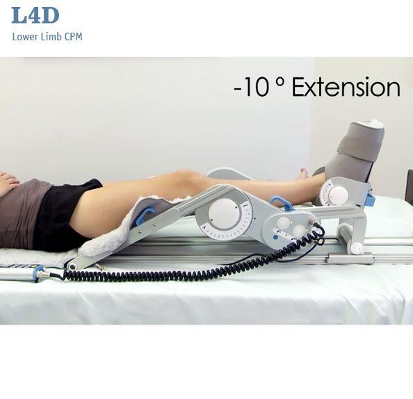 Urządzenie umożliwia cyfrową kontrlę zabiegu z modyfikacją prędkości od 30o do 210o na minutę i zakresu ruchu od -10o do 135o , z jednoczesnymi ruchami w stawach biodrowym i kolanowym. L4D zapewnia dodatkowo regulowany ruch w stawie skokowym dla ciągłego ruchu biernego całej kończyny.