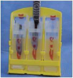 Do bezpiecznego ściągania, usuwania i przechowywania ostrzy skalpela. Zapobiega zranieniu ostrymi krawędziami skalpela podczas usuwania ręcznego, kleszczami lub ponownego wkładania do osłony.