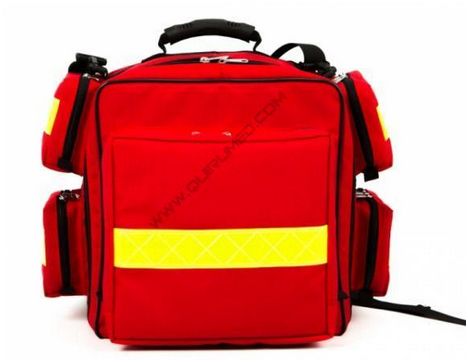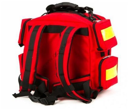 Plecak na sprzęt medyczny. Wykonany z nylonu z pasami odblaskowymi i zamkiem błyskawicznym; 5 zewnętrznych kieszeni i wyjmowane wewnętrzne kieszenie; wyściełane taśmy naramienne.