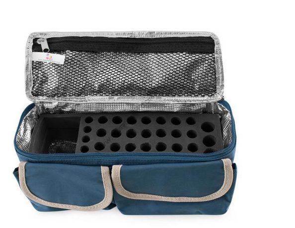 Torba izotermiczna do transportu próbek do badań klinicznych. Wewnątrz gąbka z otworami do bezpiecznego transportu próbek.