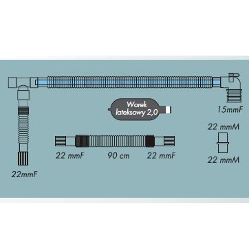 Obwody współosiowe z odgałęzieniem rozciągliwym i lateksowym workiem oddechowym