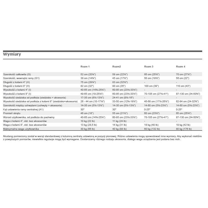 Mustang jest dostępny w czterech rozmiarach i odpowiedni dla dzieci w wieku 1 - 10 lat.