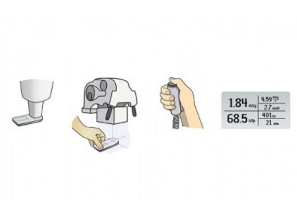 Urządzenie umieszcza się pod lampą rentgena i poddaje ekspozycji. Wynik pomiaru ukazuje się na wyświetlaczu.