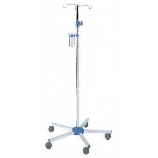 Stojak infuzyjny ze stali chromowanej z uchwytem na butelki i podstawą: