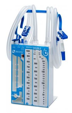 Drentech Double - Wielokomorowy zestaw do drenażu opłucnej, z wodną regulacją siły ssania i dwoma odłączanymi drenami, 2100ml
