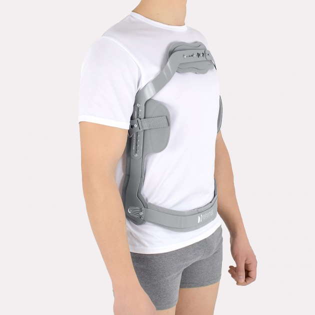 Całość konstrukcji została pokryta od zewnątrz laminatem medycznym. Taka konstrukcja wyrobu pozwala na zakładanie gorsetu na gołe ciało, bez ryzyka wystąpienia odparzeń skóry.Wyżej wymienione cechy pozwalają na stosowanie gorsetu przez wszelkiego typuośrodki medyczne, nawet te bez specjalistycznego wyposażenia, co szczególnie ważne jest w ortotyce przypadków nagłych.