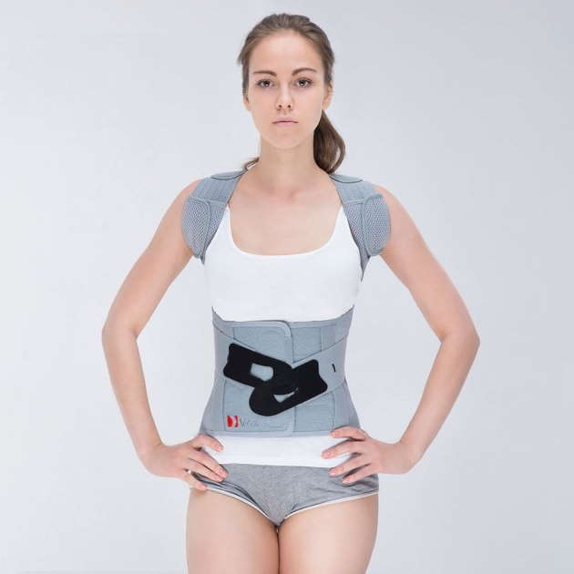 Orteza została zaprojektowana dużo bardziej anatomicznie, dzięki czemu wyrób dokładniej dopasowuje się do każdej sylwetki oraz dużo lepiej stabilizuje odcinek krzyżowo-lędźwiowo-piersiowy kręgosłupa. Dzięki zastosowaniu podpaszek w odcinku piersiowym udało nam się uzyskać pełną stabilizację przednio – tylną na całej długości kręgosłupa.