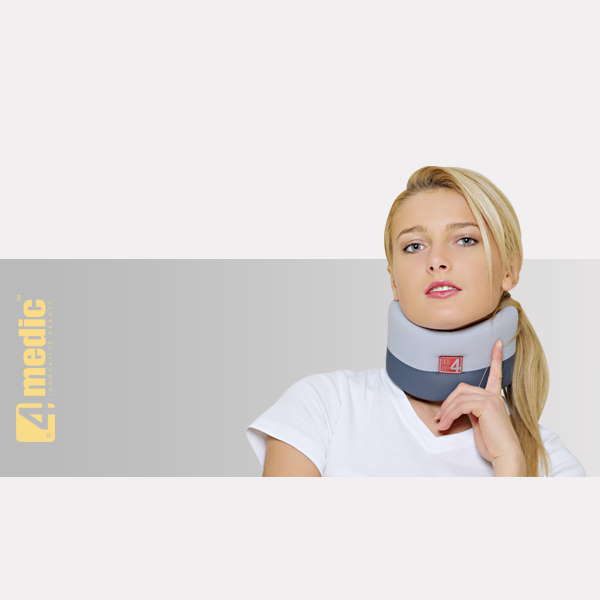 Kołnierz szyjny miękki typu Schanza, wykonany z odpowiednio dobranej pianki poliuretanowej oraz dzianiny ProFit. Jest to dwuwarstwowa dzianina, która doskonale dopasowuje się do ciała pacjenta, rozciąga się we wszystkich kierunkach doskonale modelując kształt kończyny – tworzy tzw. drugą skórę. Zewnętrzna warstwa ze spandexu odpowiada za właściwą kompresję i dopasowanie wyrobu, redukuje drganie mięśni powstające w trakcie wysiłku fizycznego. Wewnętrzna membrana z mikrofibry, bawełny i elastanu odpowiada za utrzymanie właściwego klimatu przy skórze oraz odprowadzanie potu, jej struktura gwarantuje aksamitną miękkość w dotyku.