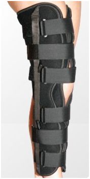 Tutor unieruchamiający kończynę dolną jest wykonany z pianki poliuretanowej dwustronnie pokrytej tkaniną okładkową o charakterystyce samoszczepnej. Tutor został wyposażony w: 1. Otwarty miękki rękaw umożliwiający adaptację wyrobu do zróżnicowanych obwodów kończyny dolnej. 2. System pasów VELCRO zapewniających właściwe przyleganie wyrobu do ciała i efektywniejszą stabilizację zabezpieczonej kończyny. 3. System anatomicznie wyprofilowanych aluminiowych szyn z zespołem niezależnego mocowania do rękawa tutora. Taka konstrukcja wyrobu umożliwia indywidualne, łatwe i precyzyjne dopasowanie wyrobu do ciała pacjenta oraz zapewnia pewną stabilizację kończyny.