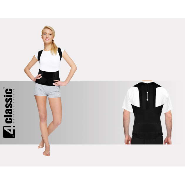 Wysoka orteza krzyżowo-lędźwiowo-piersiowa z podpaszkami należy do grupy 4Classic i została przez nas skonstruowana w taki sposób, aby zwiększyć jej walory użytkowe, poprawić jej funkcjonalność, zakres stabilizacji oraz komfort użytkowania. Dodatkowym atutem jest możliwość regulacji wysokości stelaża kręgosłupa. Stworzona z lekkich materiałów o dużej przewiewności i dzięki temu wyrób stał się bardzo lekki i łatwo odprowadzający pot od ciała. Anatomiczny krój wyrobu powoduje, że orteza dokładniej dopasowuje się do każdej sylwetki oraz dużo lepiej stabilizuje odcinek krzyżowo-lędźwiowo-piersiowy kręgosłupa. Dzięki zastosowaniu podpaszek w odcinku piersiowym udało nam się uzyskać pełną stabilizację przednio – tylną na całej długości kręgosłupa.