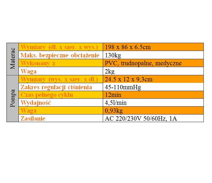 • dwie sekcje główne i sto trzydzieści komór powietrznych