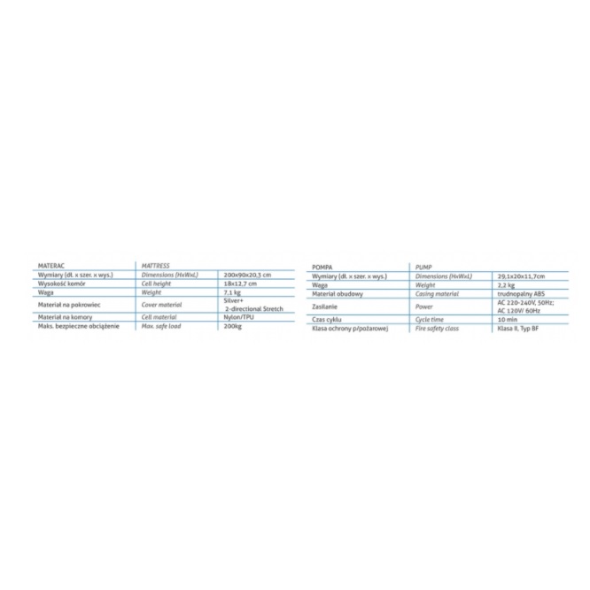 Wymiary (dł. x szer. x wys.): 200 x 90 x 20,3 cm