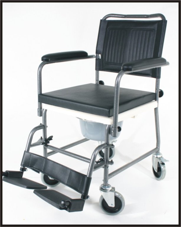 Wózek inwalidzki toaletowy 3004. Stała stalowa rama posiada wyjmowany zbiornik umieszczony pod siedziskiem łatwo zmywalna tapicerka. Posiada plastikowe siedzisko z otworem i tylne oparcie. Boczki składane do przodu odchylane, zdejmowane podnóżki z regulacją wysokości. Szerokość siedziska:45 cm. Wysokość oparcia tylnego: 40 cm. Głębokość siedziska: 44 cm. Waga: 13 kg.