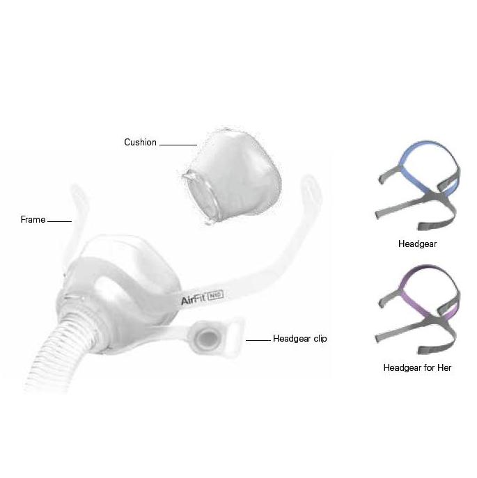 AirFit N10 for Her firmy Resmed została zaprojektowana dla mężczyzn z pasami w kolorze niebieskim oraz dla kobiet z pasami w kolorze różowym.