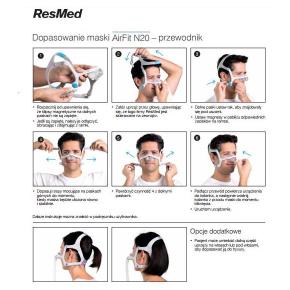 Występuje również wersja AirFit N20 for Her (dla niej). Przeznaczona specjalnie dla kobiet maska ma mniejszy rozmiar i pasuje do rysów twarzy kobiet.