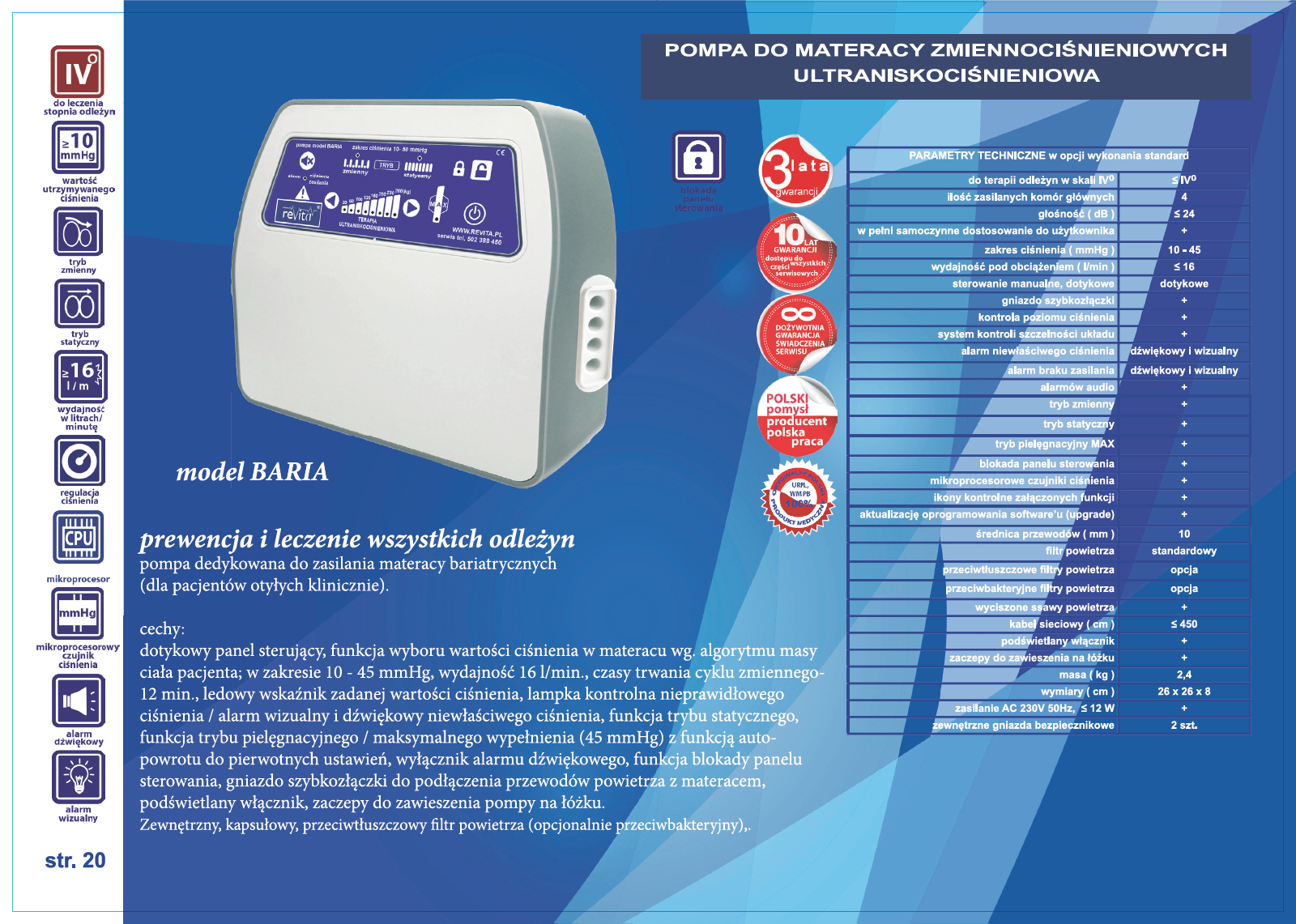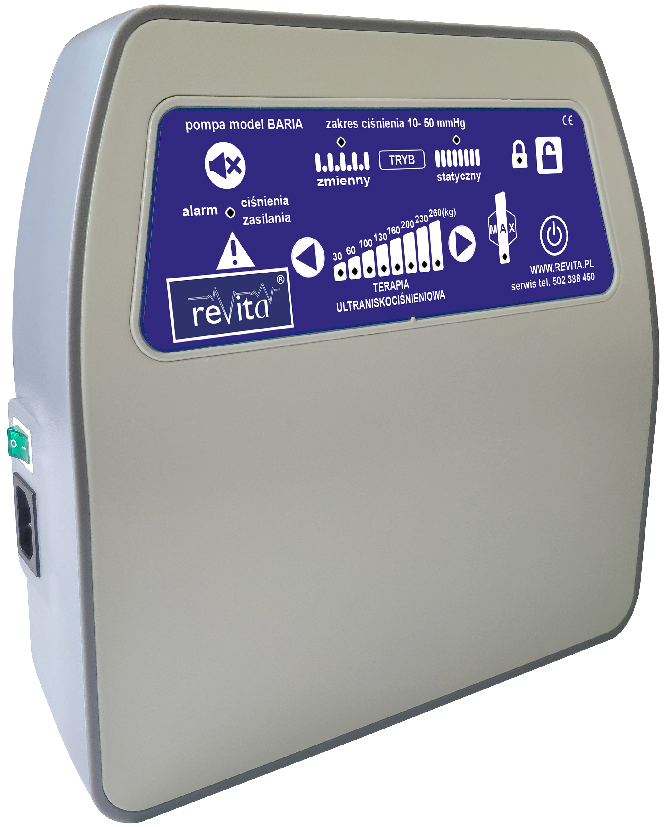 Ultraniskociśnieniowa pompa model BARIA: prewencja i leczenie wszystkich odleżyn pompa dedykowana do zasilania materacy bariatrycznych; dla pacjentów otyłych klinicznie.