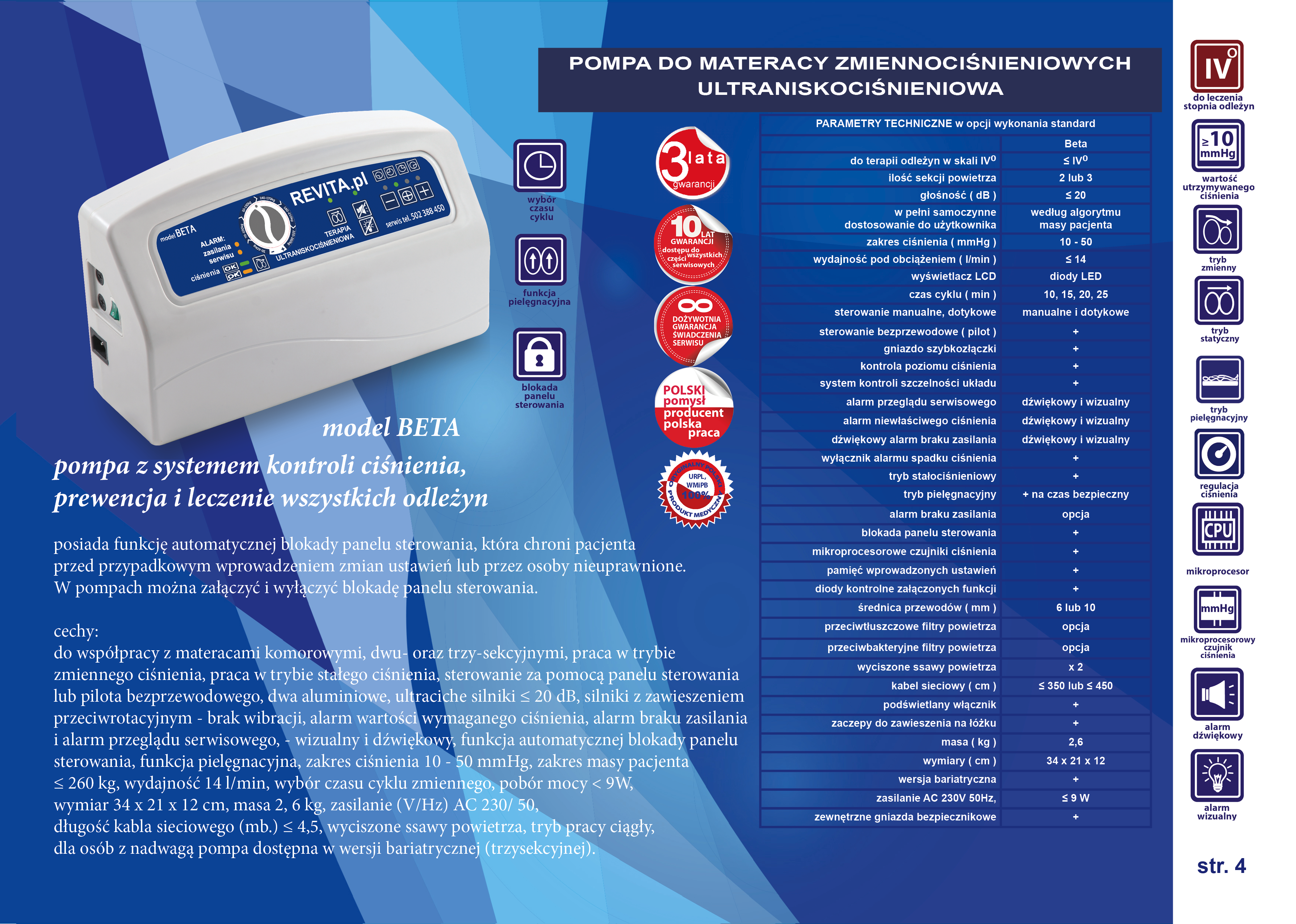 • pompa z systemem kontroli ciśnienia, prewencja i leczenie wszystkich odleżyn;