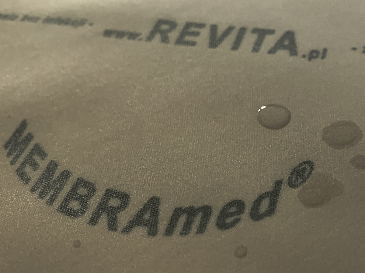 Pokrowiec materaca umożliwia bezproblemowe, bieżące utrzymanie higieny ciała pacjenta. Skutecznie pomaga utrzymać skórę chorych w najlepszym stanie, poprawia samopoczucie i komfort leżenia. Zmniejsza ryzyko powstania odleżyn poprzez powierzchniową redukcję temperatury ciała. Materiał MembraMED® jest miękki, tworzy gładką i wolną od zagnieceń powierzchnię, która zapobiega otarciom naskórka oraz powstawaniu miejscowych ucisków. Charakteryzuje się brakiem pylenia, barierowością dla płynów i drobnoustrojów (w tym alergenów), oddychalnością, łatwością układania i brakiem pamięci kształtu. Jest wykonany z nowoczesnej, wielowarstwowej membrany aktywnej, stworzonej dla ukierunkowania przepływu powietrza i ograniczenia przenikania płynów wokół ciała chorego. Przepuszczalność pary wodnej i powietrza jest przetestowana i jednorodna. Osłona skutecznie chroni pacjenta przed reinfekcją ze strony materacy szpitalnych. Membrana wykonana jest z poliuretanu – tworzywa całkowicie bezpiecznego i obojętnego dla organizmu, bardzo odpornego na uszkodzenia, wyjątkowo wytrzymałego na rozciąganie i rozerwanie. Chroni materac przed uszkodzeniem skutecznie wydłużając czas jego użytkowania. Materac pozostaje bez zarzutu zarówno pod względem estetycznym jak i higienicznym. Pokrowiec jest zmywalny i łatwy do zdjęcia w celu wyprania, wymiany lub uzyskania dostępu do materaca. Można go łatwo, szybko czyścić i żadne zanieczyszczenia nie wnikają w jego strukturę. Jest odporny na gotowanie, suszenie i prasowanie w temperaturze do 105°C oraz na powszechnie dostępne, wodne i alkoholowe środki dezynfekcyjne. Średni czas intensywnego użytkowania wynosi 5-8 lat. Osłony skutecznie chronią materace przed użytkownikiem oraz użytkownika przed materacem. Poliestrowe włókno tekstylne stanowi elastyczny szkielet, który pokryto membraną o strukturze mikroporów.