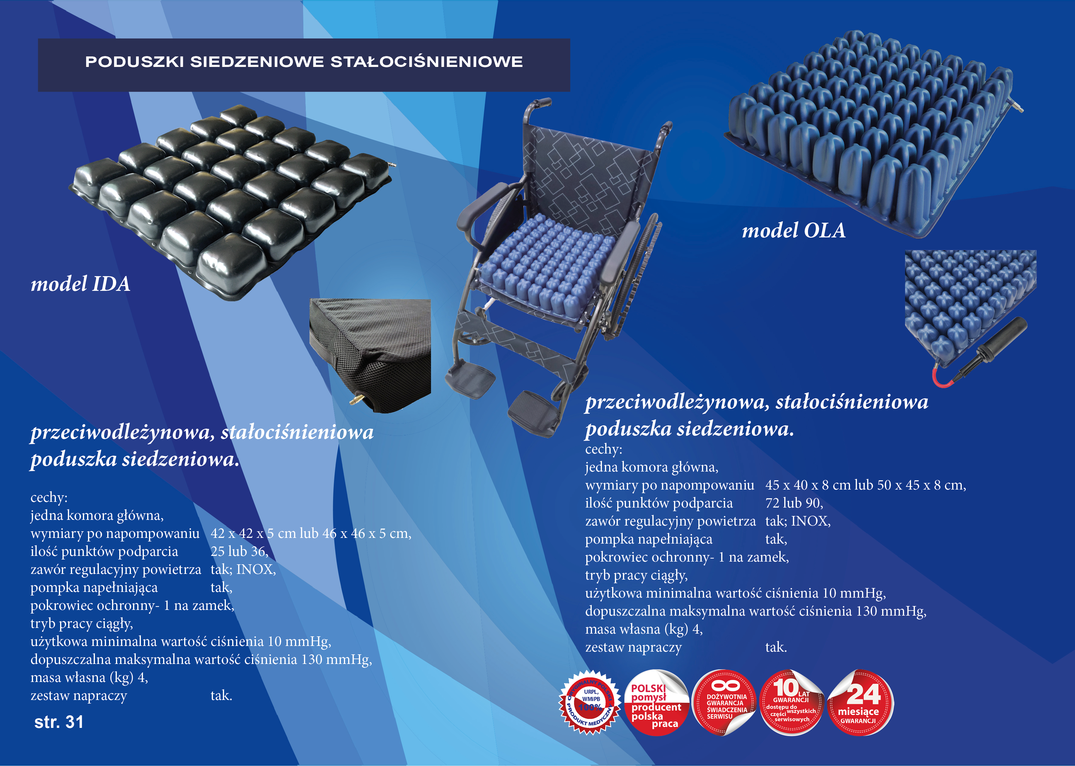 przeciwodleżynowa, stałociśnieniowa poduszka siedzeniowa. Profilaktyka odleżyn.