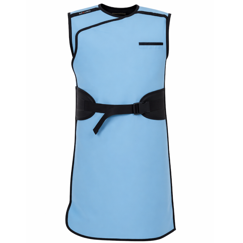 Płaszcz RTG zabezpiecza przód, tył, barki, boki i łopatki użytkownika. Stanowi wielostronną ochronę. Zapinany jest na tzw. zakładkę za pomocą odpowiednio rozmieszczonych taśm rzep.